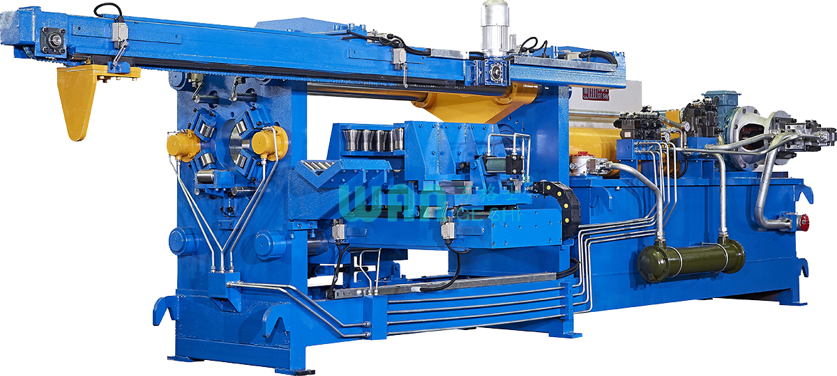 擠壓機是一種利用強大的壓力,將加熱軟化后的有色金屬通過特定形狀的模具,強制擠出,從而獲得所需截面形狀的型材的加工設備。它是 “擠壓生產線” 的絕對核心和動力源頭。整條生產線圍繞它進行設計和運作,其角色和作用至關重要。擠壓過程的控制對型材的微觀組織、表面質量和尺寸精度起著基礎性作用。