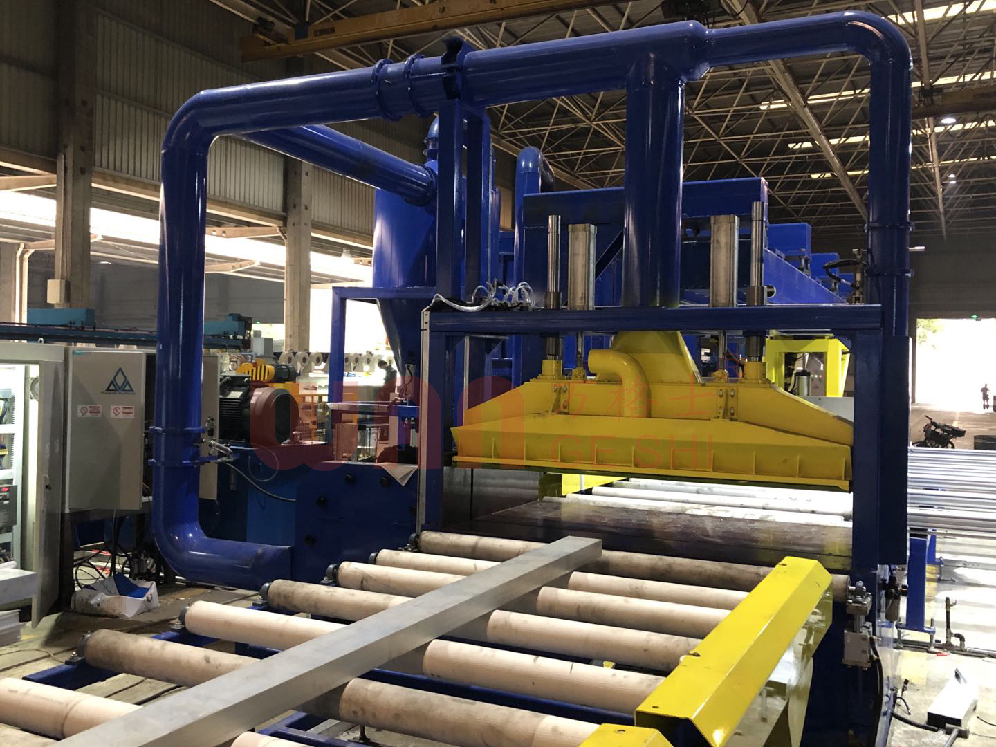 冷床是鋁擠壓生產線上的關鍵過渡設備,位于擠壓出口與時效爐之間。其主要作用是承接并輸送高溫型材,使其在冷卻,同時兼具定尺鋸切、矯直和儲料功能,是保障型材平直度和最終產品質量的重要環節。